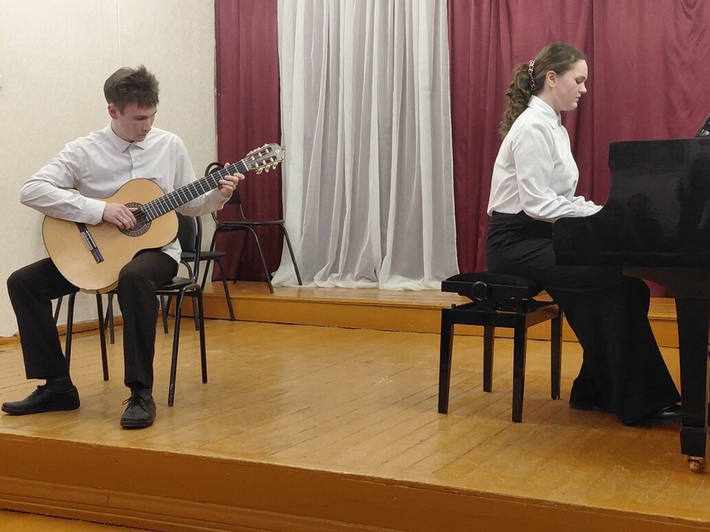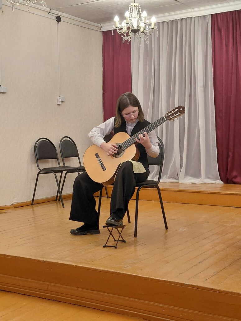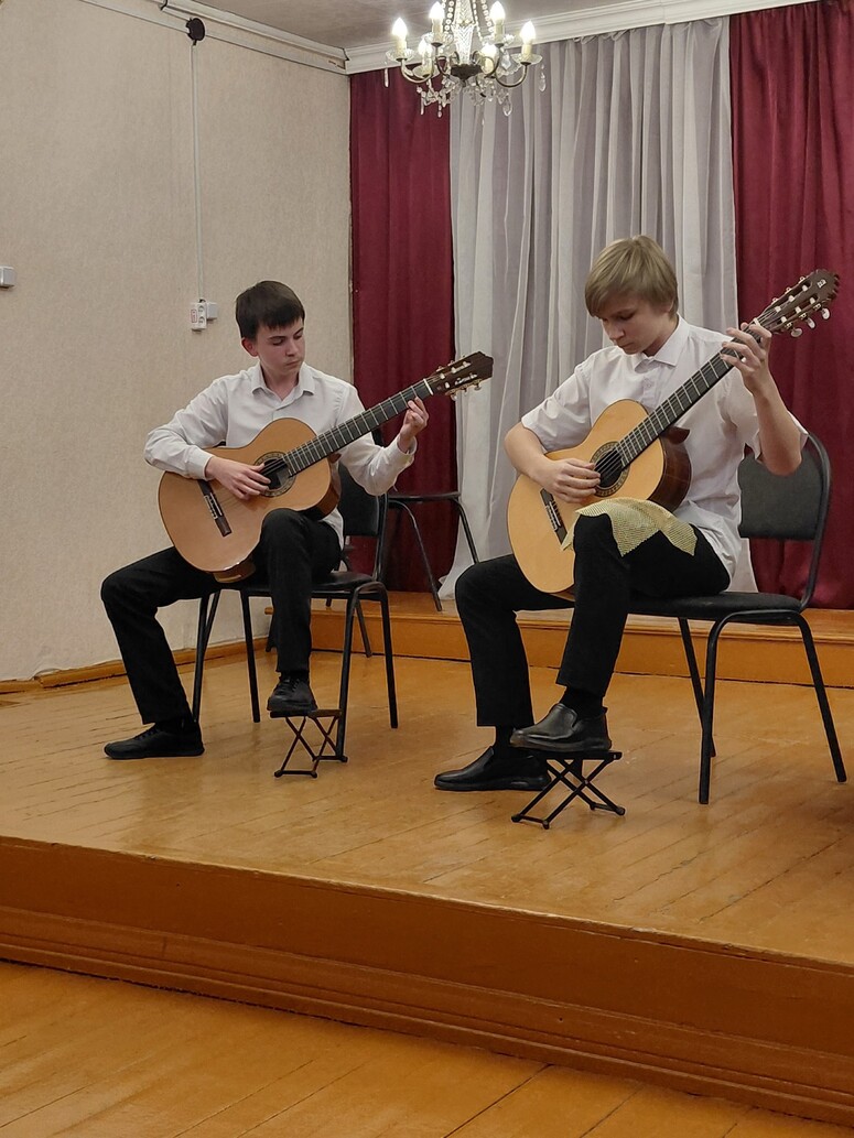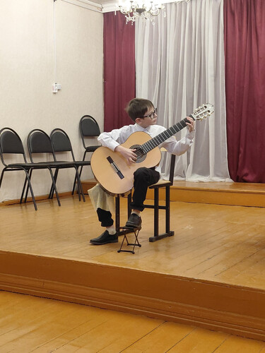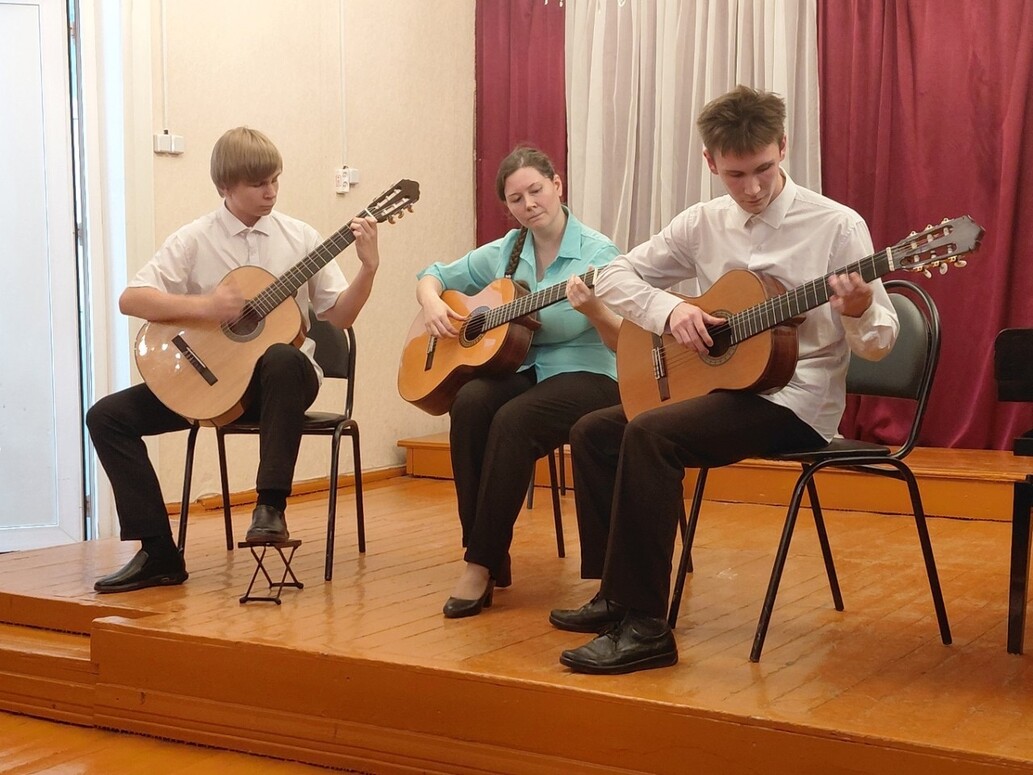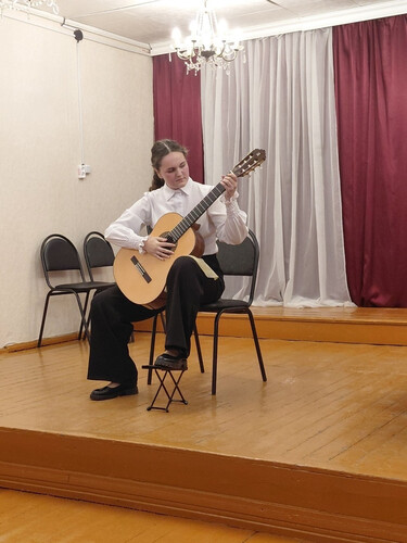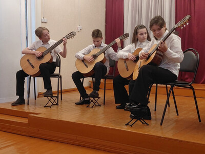22 октября 2025 года в Усть-Цилемской детской музыкальной школе состоялся концерт "Шестиструнные истории". Учащиеся гитарного класса Бологуровской К.Е. подготовили для вас увлекательное путешествие в мир гитарной музыки. Открыл концерт Меребашвили Демид, в его исполнении прозвучала пьеса композитора Шиндлера "Ночная прогулка Мефистофеля" И сама по себе не играет гитает, Когда душа поет и плачет Следующими на сцену вышли сразу три гитариста. Плачет киска в коридоре: Далее на сцене прозвучала старинная музыка эпохи королевы Елизаветы. Исполнил ее Дуркин Денис. Гитара - верная подруга, Далее в исполнении Гусева Кирилла прозвучала сонатина композитора Кюффнера. Раскинулось поле полностью тканью Следующей на сцене появилась Чупрова Вика. В ее исполнении прозвучали две пьесы - старинный танец Сарабанда композитора Генделя и вальс с романтичным названием "Первая любовь". Далее на сцене прозвучал дуэт гитаристов. Поздеев Егор и Семенов Дима исполнили произведение композитора Джо Дассена "Если б не было тебя". Нежная пьеса "В небе облака" (Копенаков) прозвучала в исполнении трио гитаристов - Политова Вовы, Дуркина Дениса и Поздеевой Лизы. Следующая пьеса - "Колыбельная луны" (Поплянова) прозвучала на двух инструментах - фортепиано и гитаре. Ее исполнили Пичугов Савелий и Чупрова Вика. Мы сидели у костра, И в завершени концерта уже традиционно прозвучал "Испанский танец" в исполнении Поздеева Егора, Пичугова Савелия и Кристины Евгеньевны Бологуровской. Отдельное спасибо нашим юным ведущим - Меребашвили Демиду и Гусеву Кириллу. | |